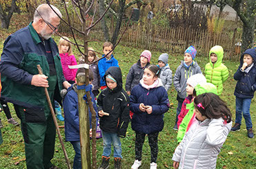Wenn es darum geht mit den Kindern Äpfel zu ernten und zur Kelter zu bringen, Obstbäume zu pflanzen, Ratschläge zu geben und unterstützende Gartenarbeiten zu verrichten, sind so manche Mitglieder des Obst und Gartenbauverein Horrheim immer zur Stelle. Ganz besonderer Dank gebührt hier dem ersten Vorsitzenden des OGV, Udo Krieger und Herrn Furch.