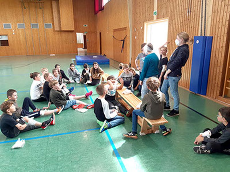 Die Klassen 3 und 4 durften in der Turnhalle das Theaterstück „Tierisch gut!“ anschauen. „Der Wolf hat die Ziege gebissen! Und die Schnecke war vom Feuer eingeschlossen und musste gerettet werden! Der Hase hat zum Glück das Feuer bemerkt und mit seinem Klopfen darauf aufmerksam gemacht. Und der Pandabär? Der hat immer gefressen. Aber am Ende konnte er sich zu Glück mit den anderen Pandas verständigen und die Tiere wieder aus dem dichten Wald herausführen! So haben alle zusammen ein großes Abenteuer erlebt und am Ende waren die zerstrittenen Tiere wieder eine tolle Gruppe.“