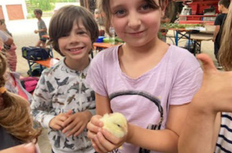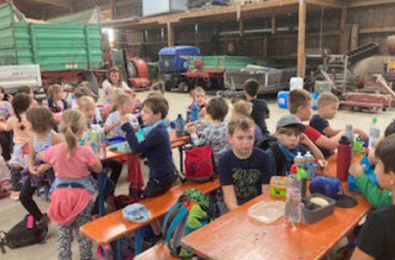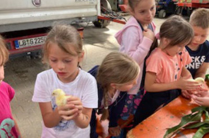 Ein besonderes Erlebnis für die beiden ersten Klassen war in diesem Sommer der Lerngang zum Geflügelhof Grau nach Sersheim, einem eingetragenen Lernbauernhof.