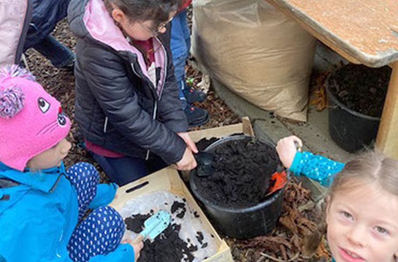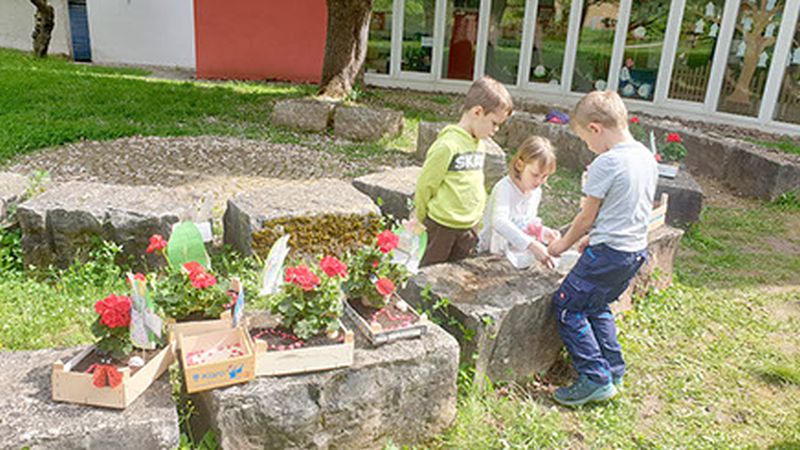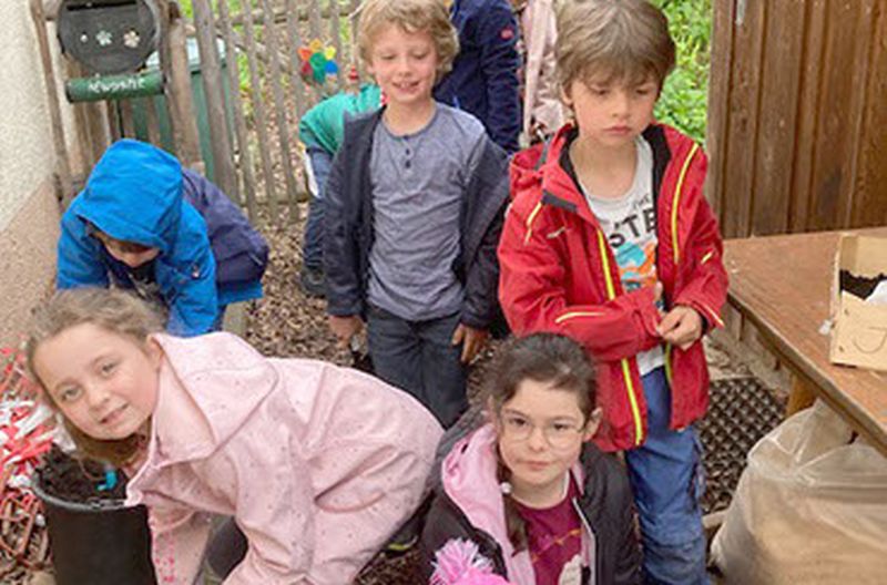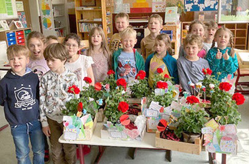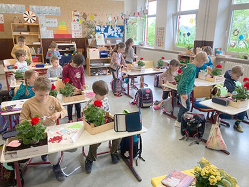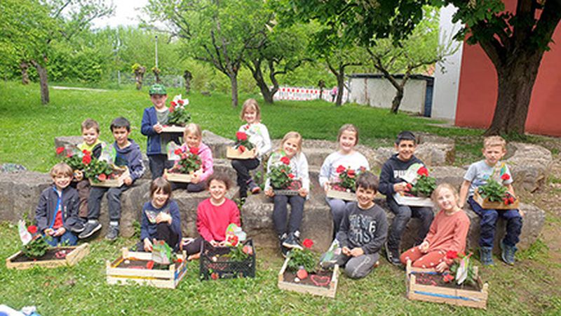 Der Obst- und Gartenbauverein spendete hierzu großzügigerweise jedem Kind eine wunderschöne Geranie. Einige Eltern hatten sich freundlicherweise bereit erklärt, die Erde zu besorgen.