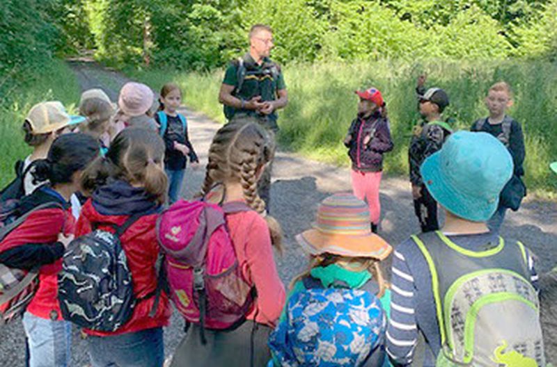 dem Weg Tiere suchen. Es waren ungefähr sieben Tiere. Herr Wöhr hat uns dann nebenher immer noch wichtige Dinge zu den Tieren erzählt. Nach dem tollen Ausflug sind die Betreuungskinder in die Betreuung gegangen und alle anderen nach Hause. Es war ein schöner Vormittag im Wald.