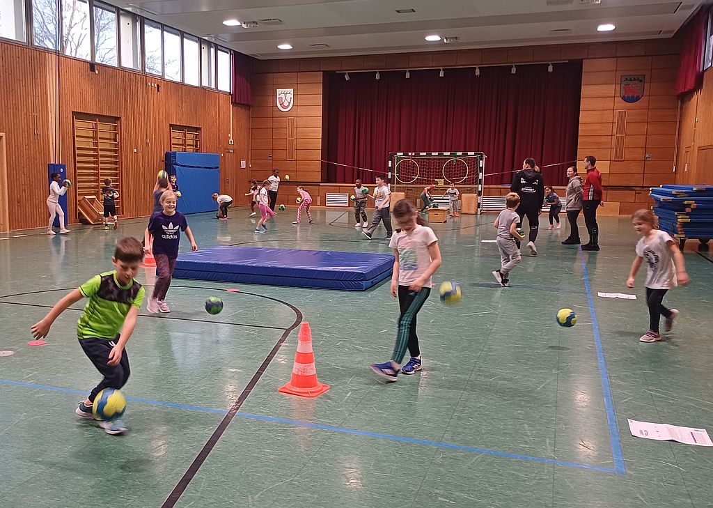 Los ging es mit kniffeligen Prell- und Wurfübungen zum Aufwärmen. Daraufhin durften die Kinder sich an verschiedenen Stationen ausprobieren. Hier ging es um zielgenaues Werfen und Fangen oder gekonntes Prellen. Aber auch Geschicklichkeitsübungen, wie das Laufen in unterschiedlichen Laufrichtungen, waren dabei. Die erzielten Ergebnisse der Stationen wurden in einen Handballpass eingetragen.