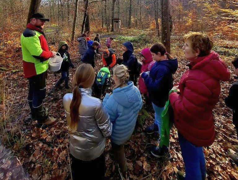 Pandas und Affen im Horrheimer Wald mit Herrn Dürr und einer weiteren Jägerin und auch der Opa von Robin hat uns geführt.