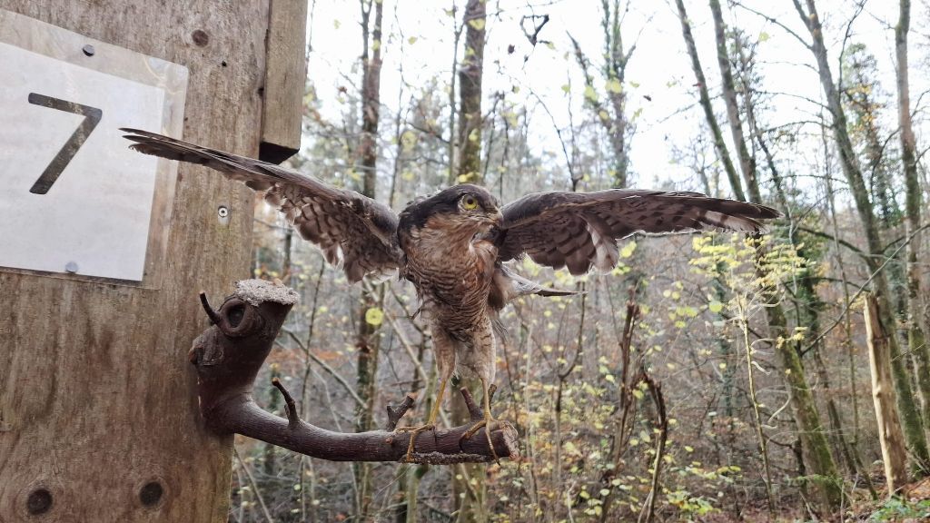 Der Waldkauz ist nur nachts aktiv und seine Lieblingsmahlzeit sind Mäuse. Auch der Baummarder ist in der Nacht unterwegs. Der Eichelhäher isst viele Eicheln. An der Futterstelle für Wildschweine haben wir ein Baby Ferkel gesehen. Der Frischling hatte sehr schöne Streifen. Es gab eine Kiste aus Holz mit getrocknetem Mais und einem Stein drauf, dass keine anderen Tiere drankommen. Die Schnauze der Wildschweine ist so stark, dass sie sie aufschieben können.