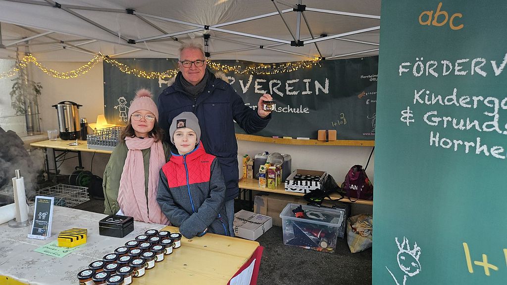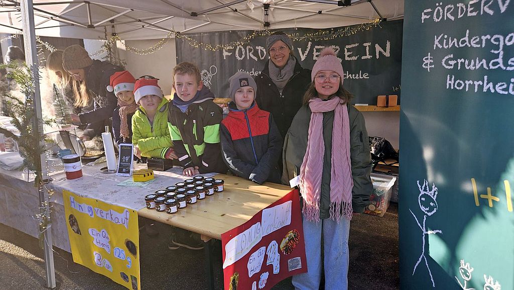 Zum ersten Mal vertreten am Weihnachtsmarkt war die Bienen AG der Horrheimer Grundschule. Am Stand des Fördervereins verkauften die AG-Kinder den Honig der schuleigenen Bienenvölker, den sie im Sommer geerntet und in Gläser abgefüllt hatten. Die Kids waren mächtig stolz und hatten viel Spaß am Verkaufen und Freude am Kontakt mit den Menschen. Besonders gefreut haben Sie sich über den Besuch der Klassenlehrerin Frau Solombrino und auch Ortsvorsteher Müller schaute mit seiner Frau vorbei und kaufte ein paar Gläschen des flüssigen Goldes.